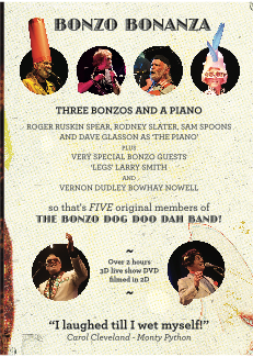 see THE COMPLETE UNEDITED OVER 2 HOURS ‘LIVE’ SHOW USING 6 CAMERAS FILMED IN DEC ’12 AT SHOREHAM UK WITH ROGER RUSKIN SPEAR, RODNEY SLATER, SAM SPOONS AND DAVE GLASSON AS ‘THE PIANO’ WITH SPECIAL BONZO GUESTS ‘LEGS’ LARRY SMITH AND VERNON DUDLEY BOWHAY NOWELL.